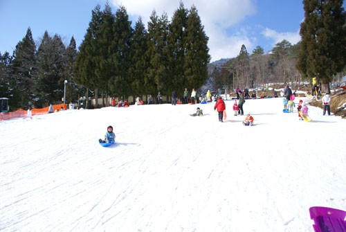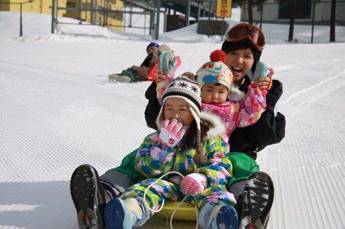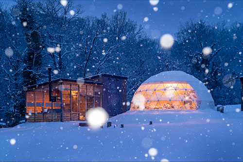 2つのコースは初級、中級者向け。スノーチューブやスノーパークで、かまくら造りなどを家族で楽しめます。併設されたキャンプ場ではグランピングや雪中キャンプも人気です。