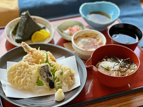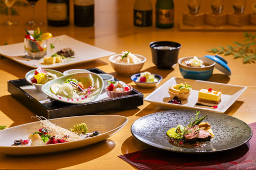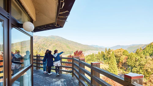 展望露天風呂から眺める景観は開放感たっぷり。7種類のお風呂を楽しめ、眼前に広がる大自然の中で非日常空間を体感できます。ヤマメやイワナなどの川魚、あわび茸・舞茸などの郷土料理を温泉水で調理し、訪れる方の味覚を満たしてくれます。