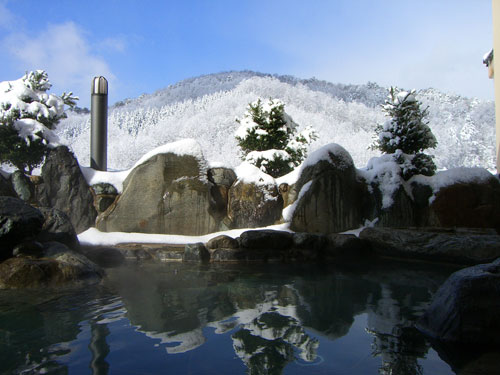 スキーの後は、源泉掛け流しの温泉でほっこり。天然ラドン温泉「仏陀の湯」と、乳酸菌が入った「龍神の湯」で心も体も温まります。目の前に広がる豊かな自然も、疲れを癒やしてくれます。