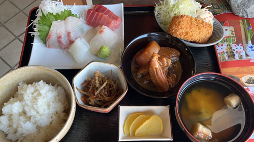 吉和の住民や観光客から愛されるコンビニ兼スーパー。売り切れ必至の「お魚バーガー」は、出合えたらラッキー! 魚が日替わりで、パンに一工夫されており、くせになる味わいと評判です。ドライブの途中で小腹がすいた時には、気軽に立ち寄って。