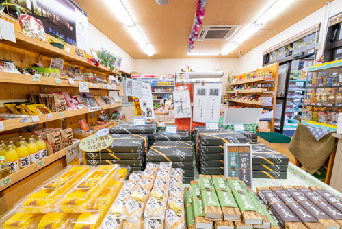 「竹屋饅頭」や生こんにゃく、土鈴などの東城の特産品や地酒など約4000種類の品揃えを誇ります。地元産玄そばの二八そばや、比婆牛ステーキが好評!敷地内には、新鮮な野菜や加工品を販売する「東城きんさい市」も。